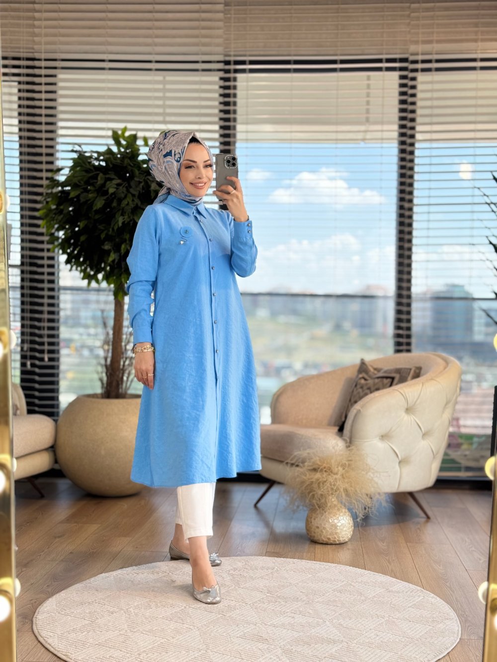 01-1294 Ön Düğmeli Uzun Tunik Mavi