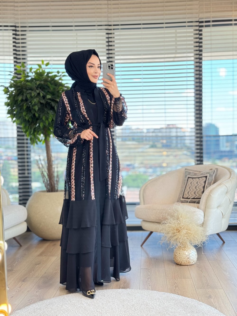 02-1473 Boyuna Pul Nakışlı 2li Takım Siyah Bakır