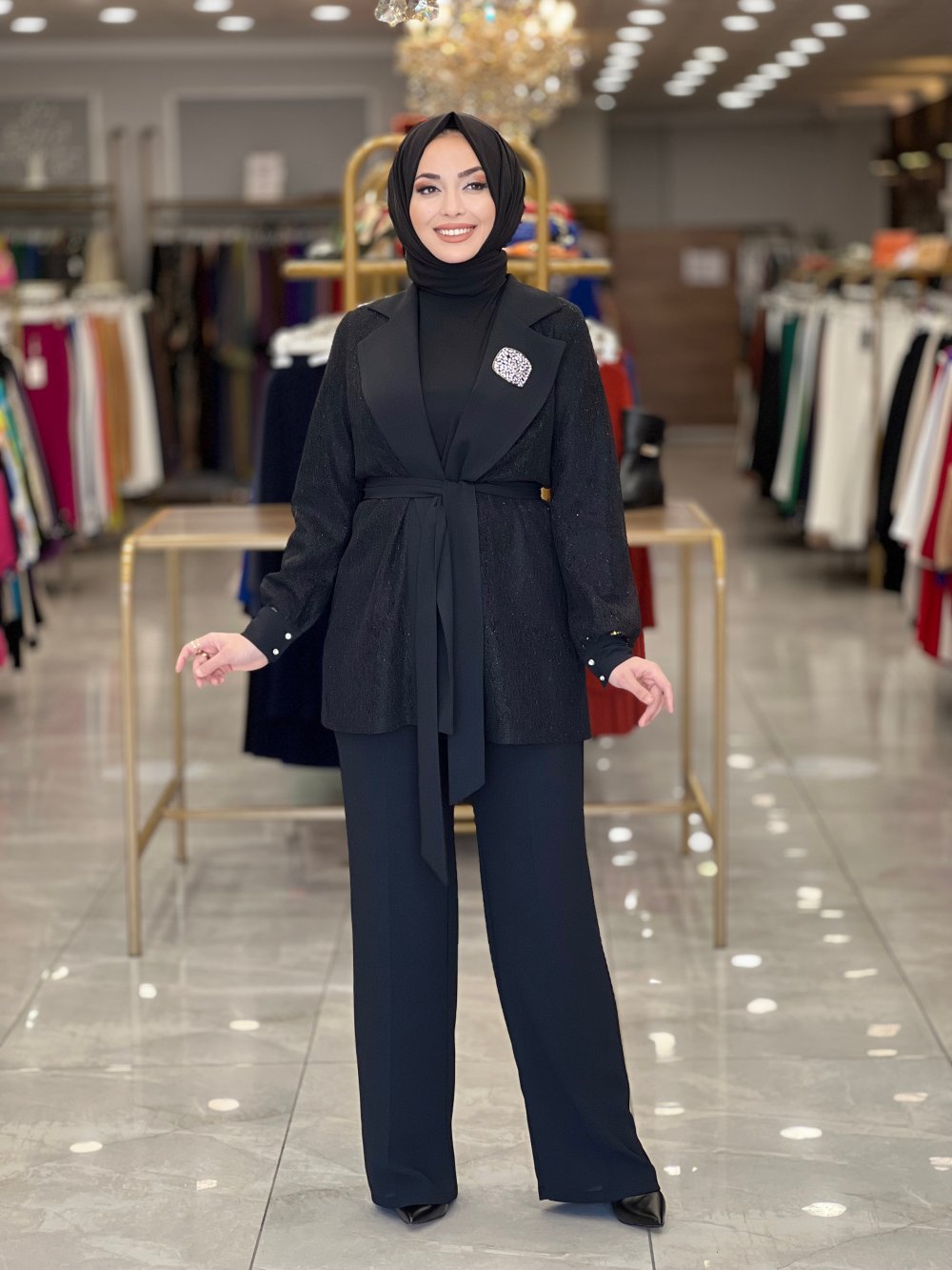 02-1775 Üst Dantel Ceket Pantolon Takım Siyah