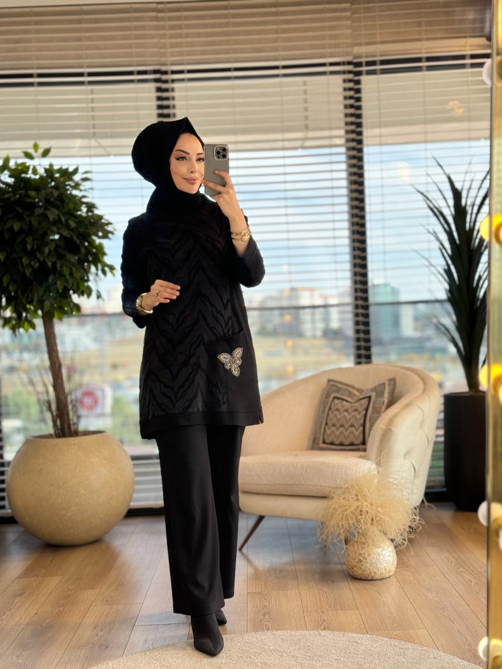 02-2245 Ön Kendinden Desenli Takım Siyah
