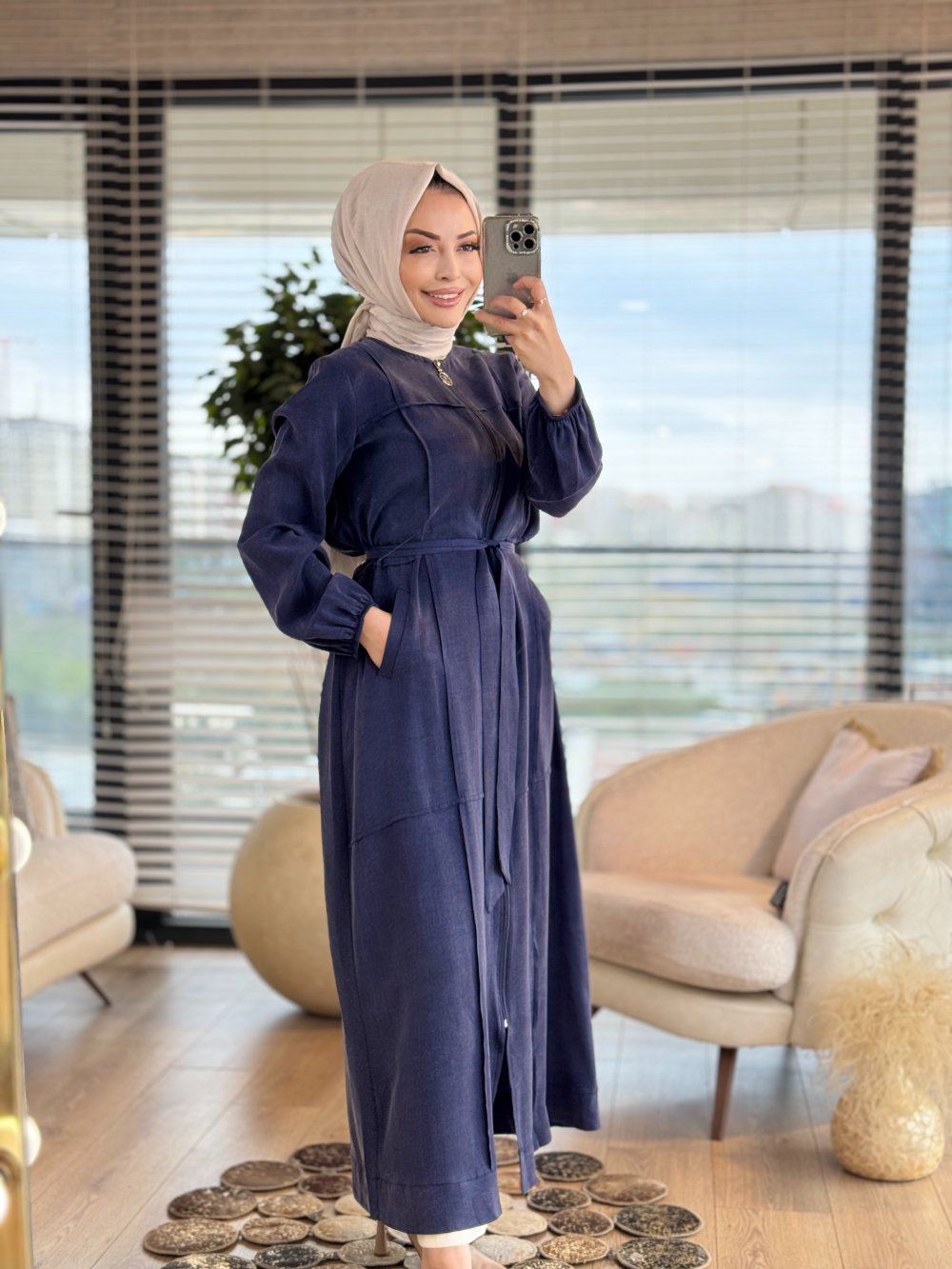 05-1180 Ön Kare Dikişli Fermuarlı Ferace Lacivert