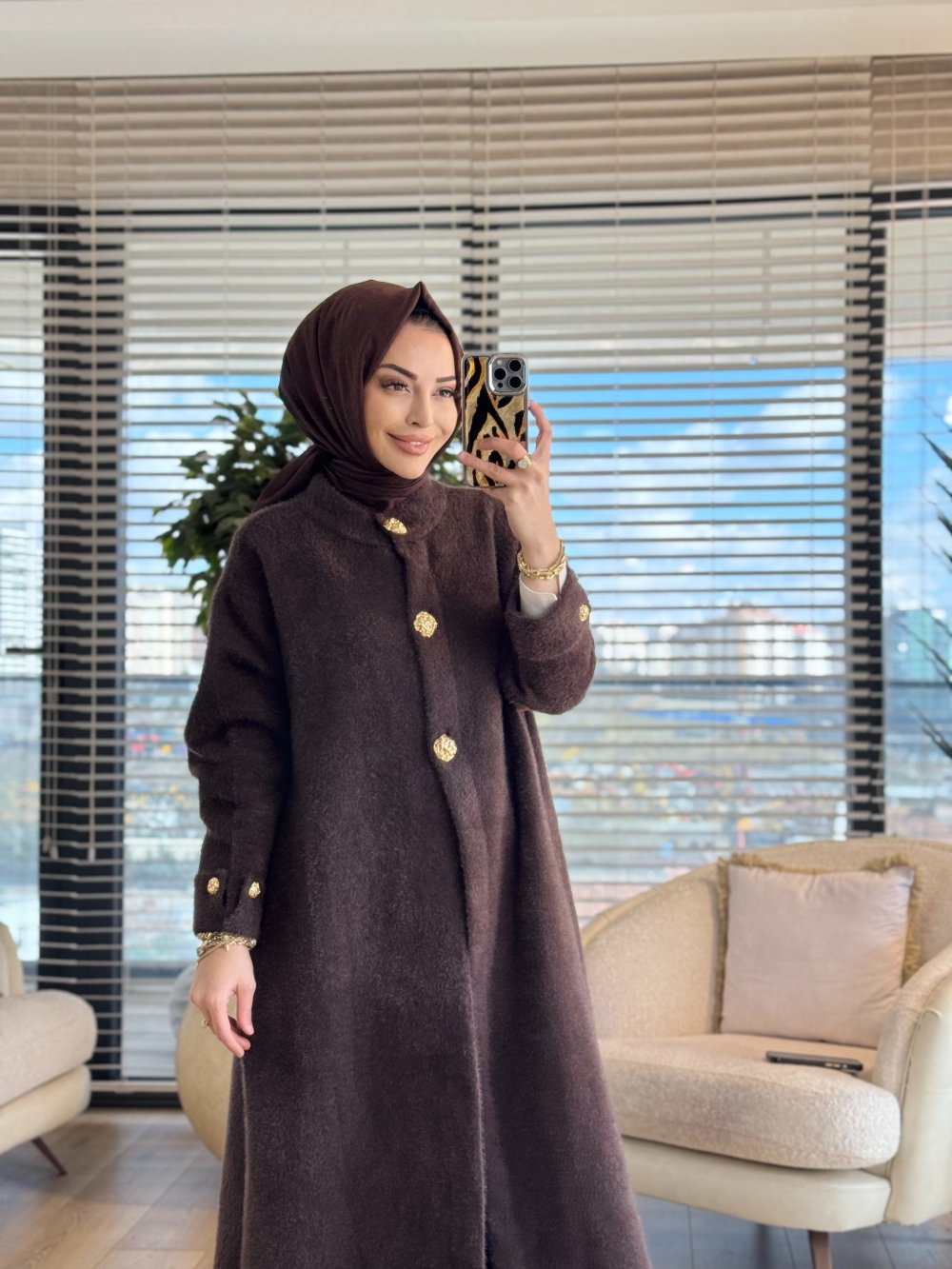 080 Angora Patı Ve Manşeti Düğmeli Kap Kahve