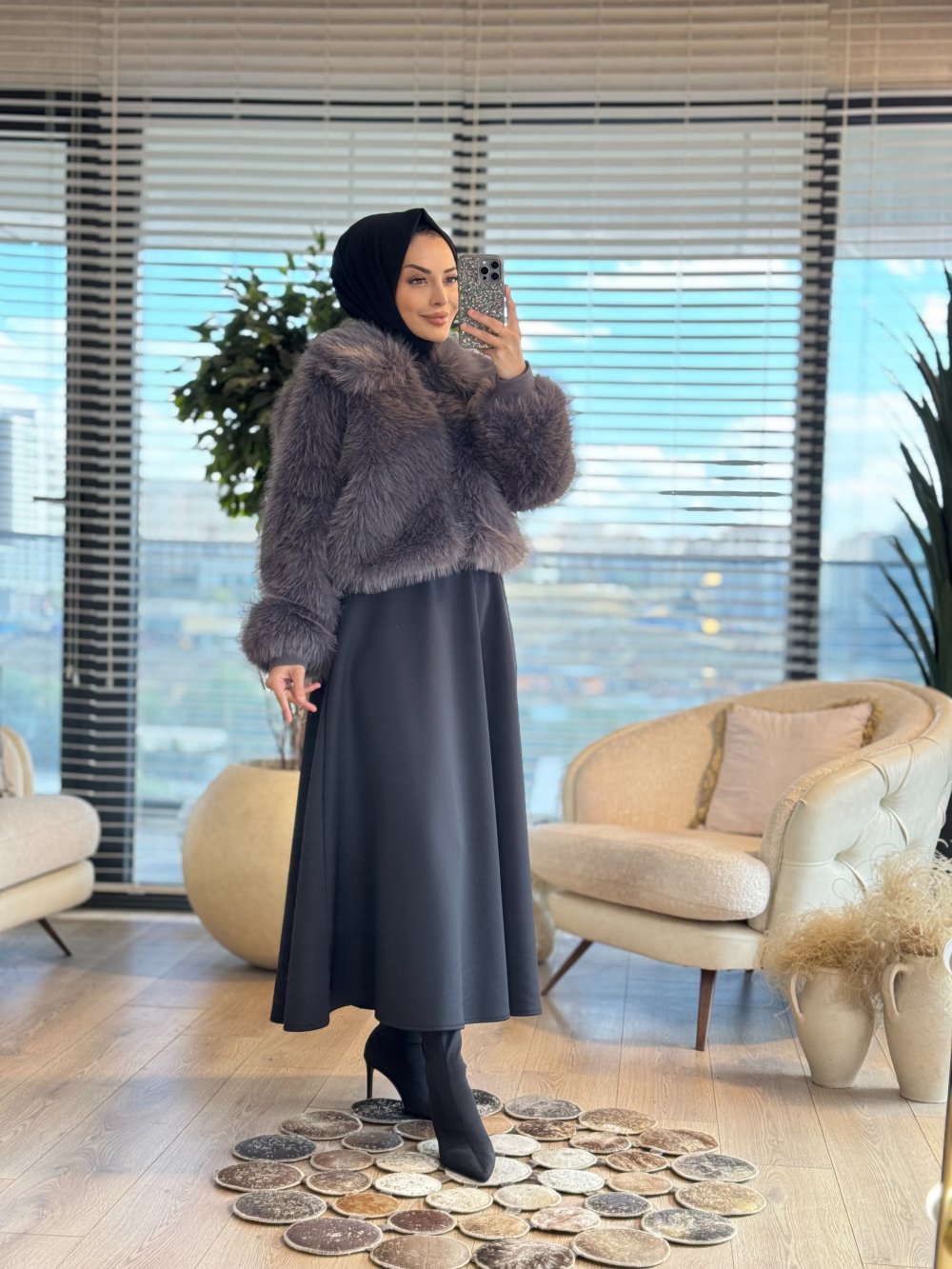 1005352 Fermuarlı Kürklü Ceket Antrasit
