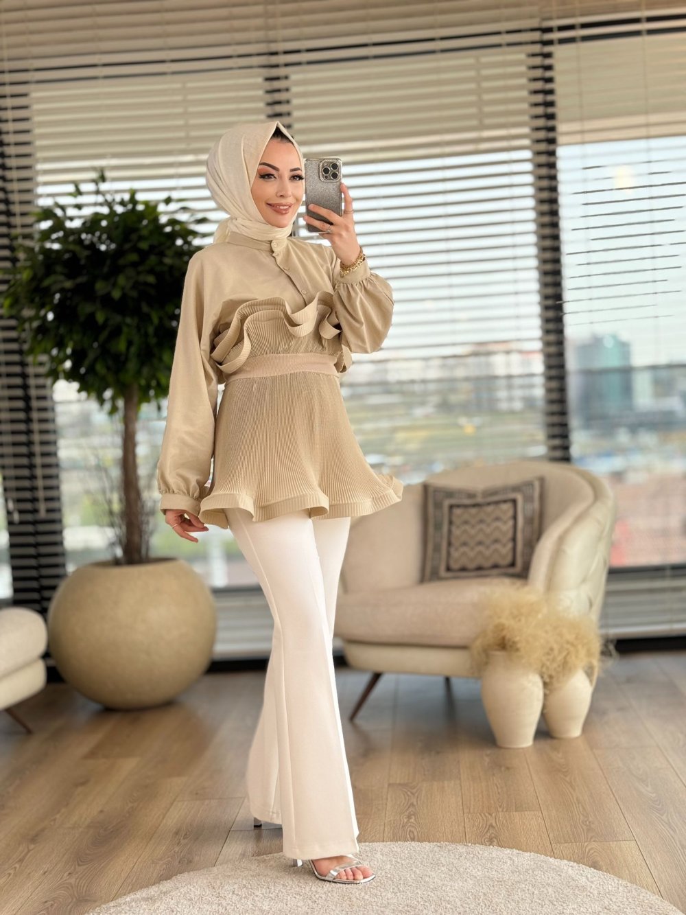 104 Akordion Bluz Bej
