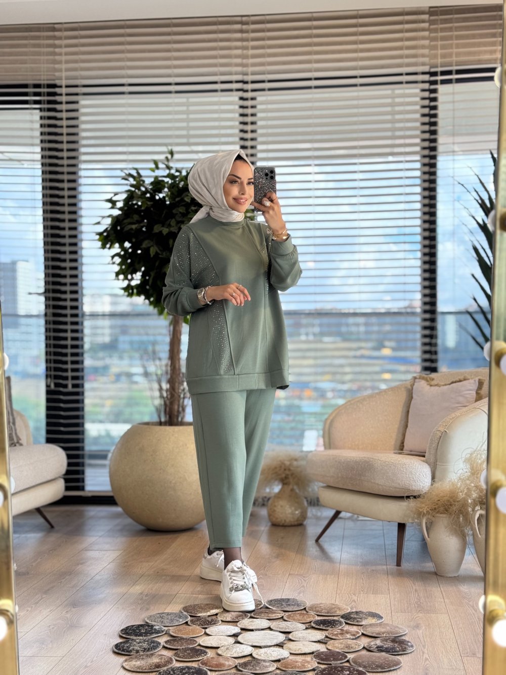 10568 Yanları Taş Baskılı Takım Çağla
