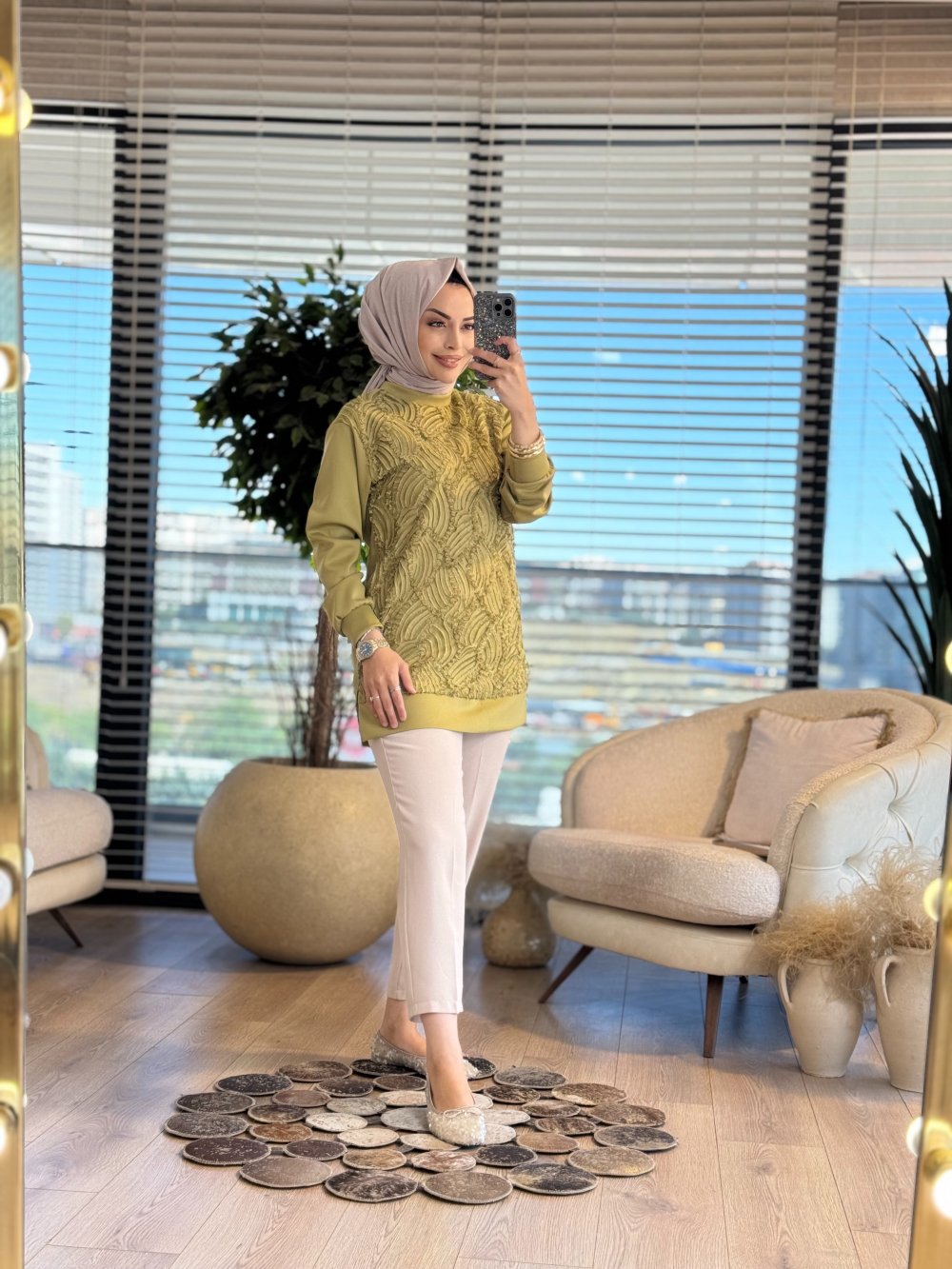 10726 Ön Sutaşlı Tunik Yağ Yeşili