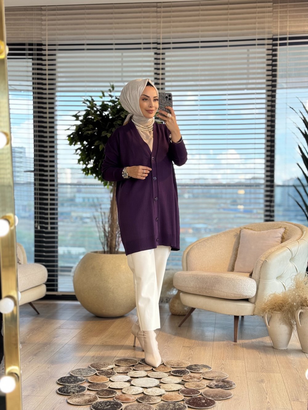 115 Boyuna Fitilli Hırka Mürdüm