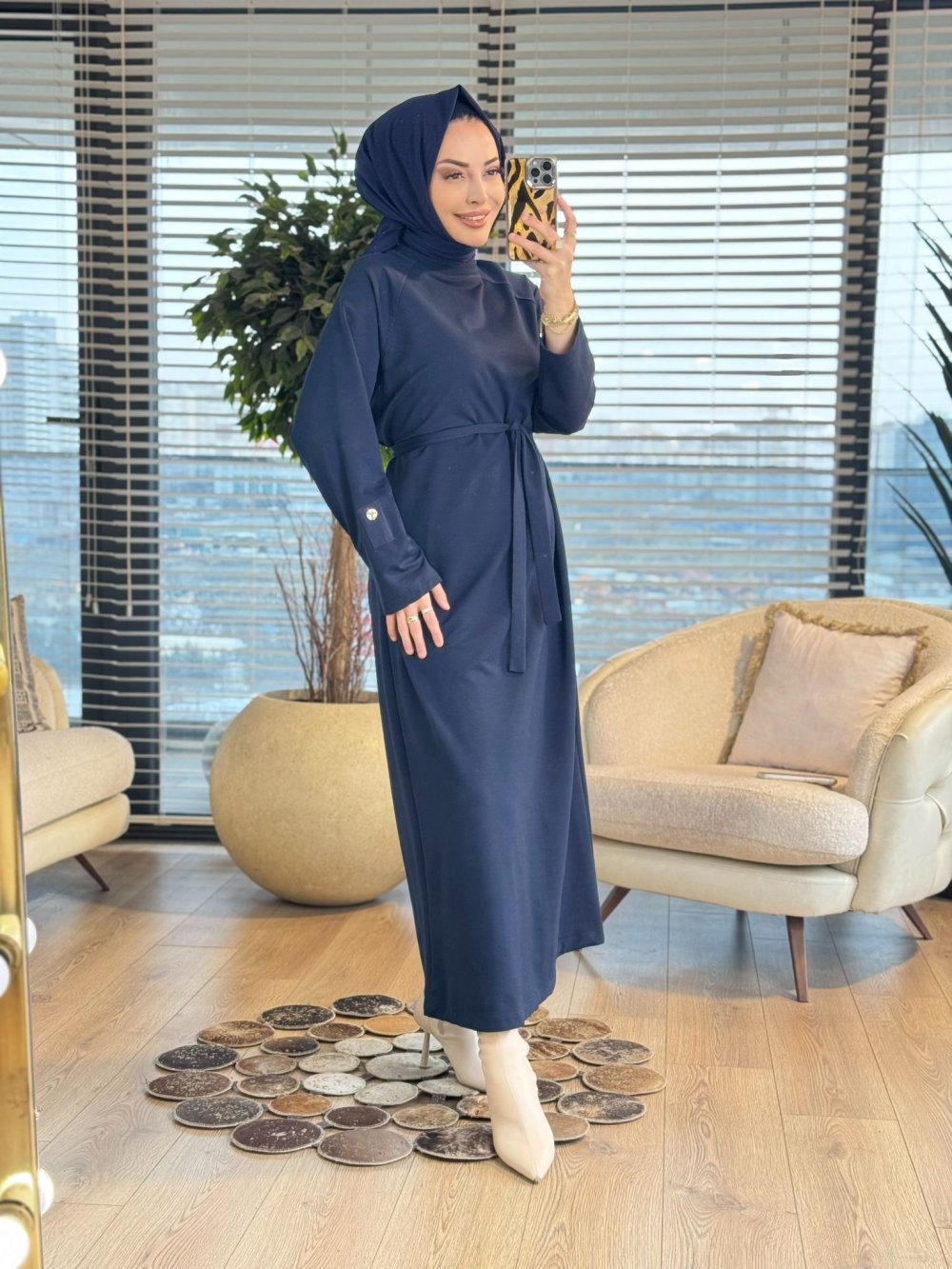 12671 Sol Kolu Çıtçıtlı Elbise Lacivert