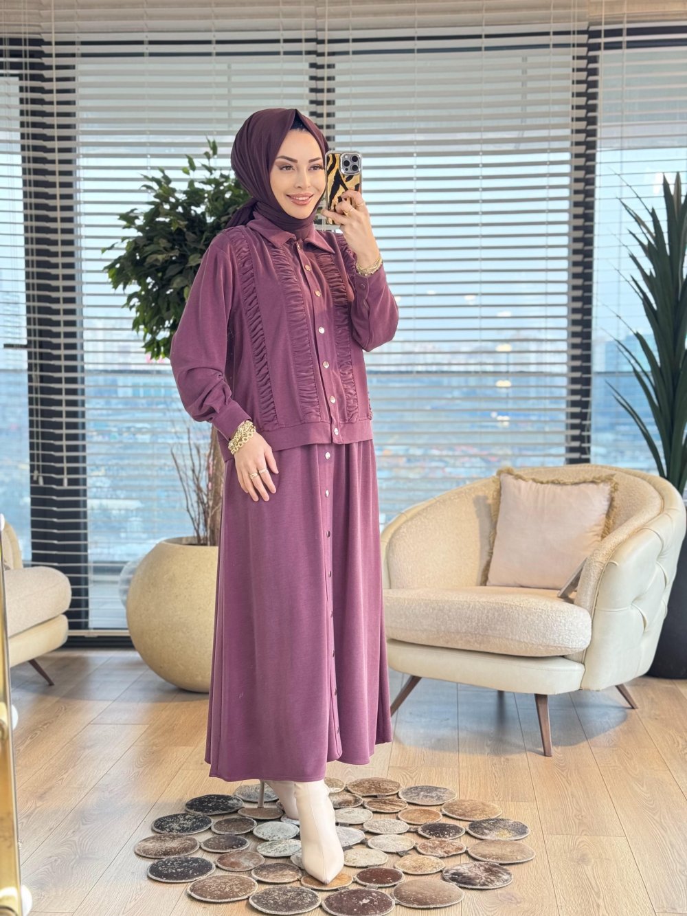 1438 Ön Büzgülü Etekli Takım Gül