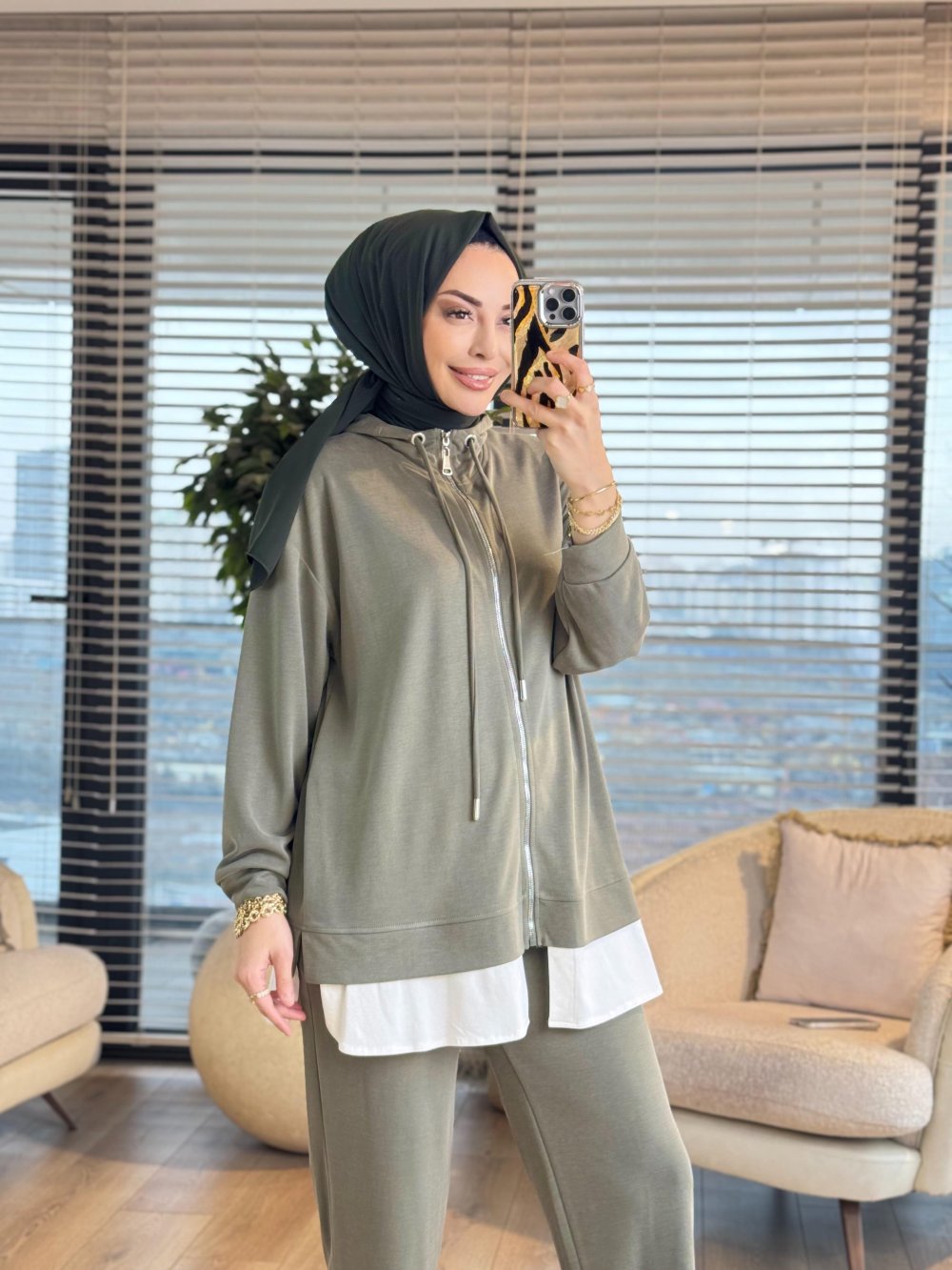14427 Etek Ucu Parça Önü Fermuarlı Takım Haki