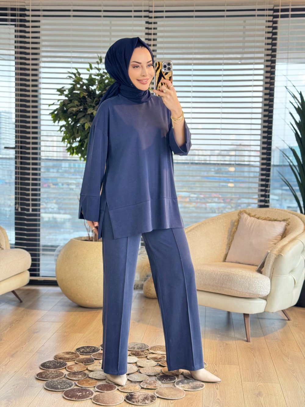 14457 Etek Ucu Parça Yırtmaçlı Takım Lacivert