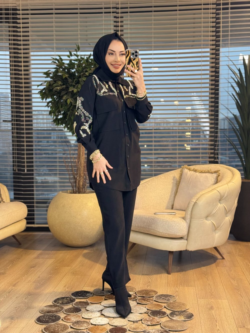 1472 Roba Kolları Boncuk İşleme Takım Siyah