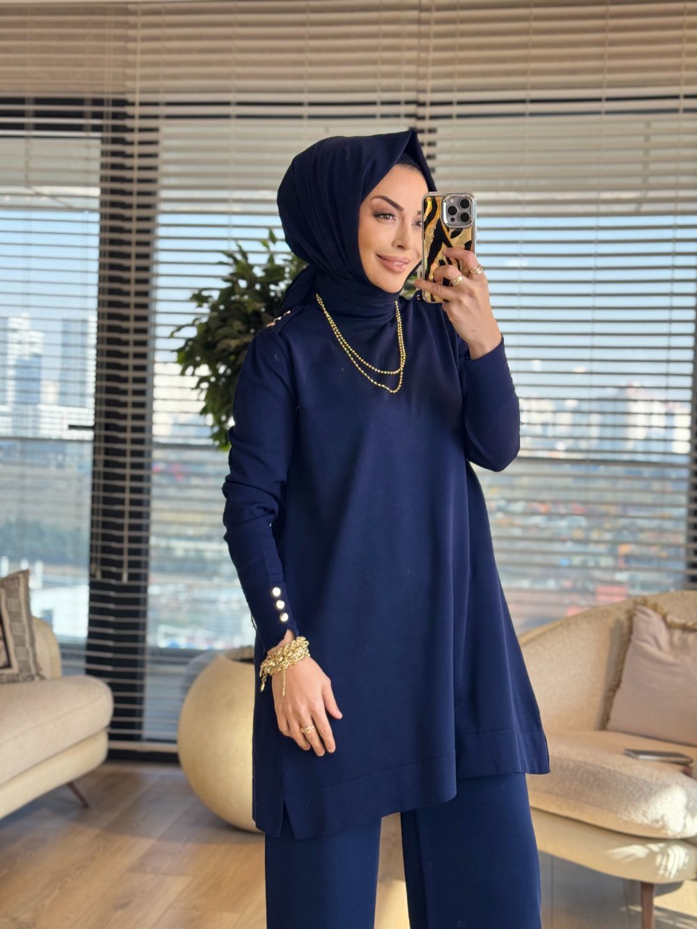 165 Omzu Düğmeli Triko Tunik Lacivert
