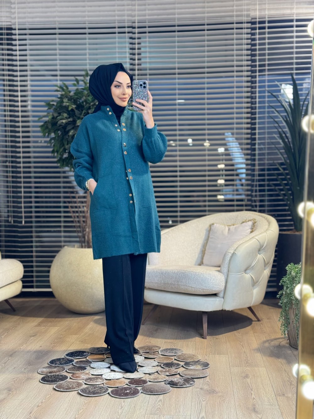 3540 Simli Sakal Çıtçıtlı Hırka Zümrüt