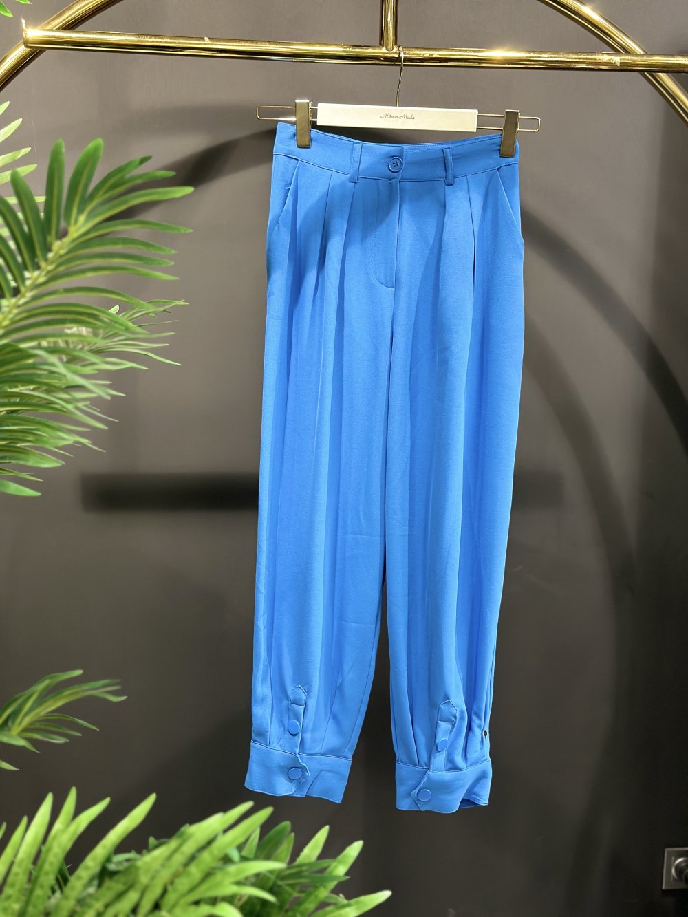 18160 Paçası 2 Çıtçıtlı Pantolon Mavi