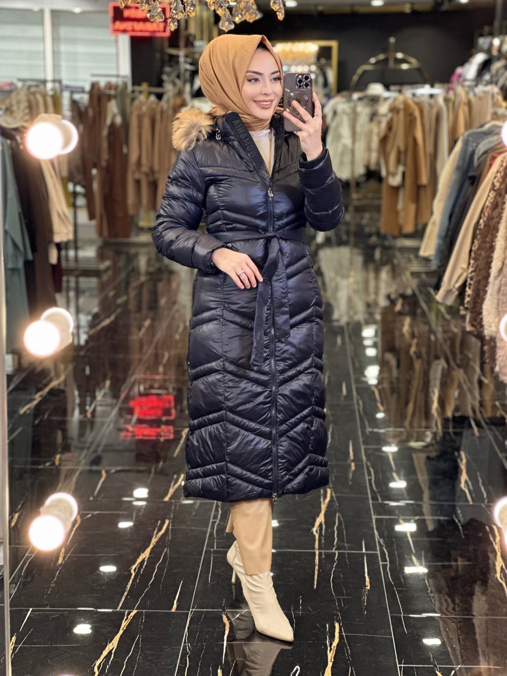 18272 Roma Kapşonu Kürklü Şişme Kaban Siyah