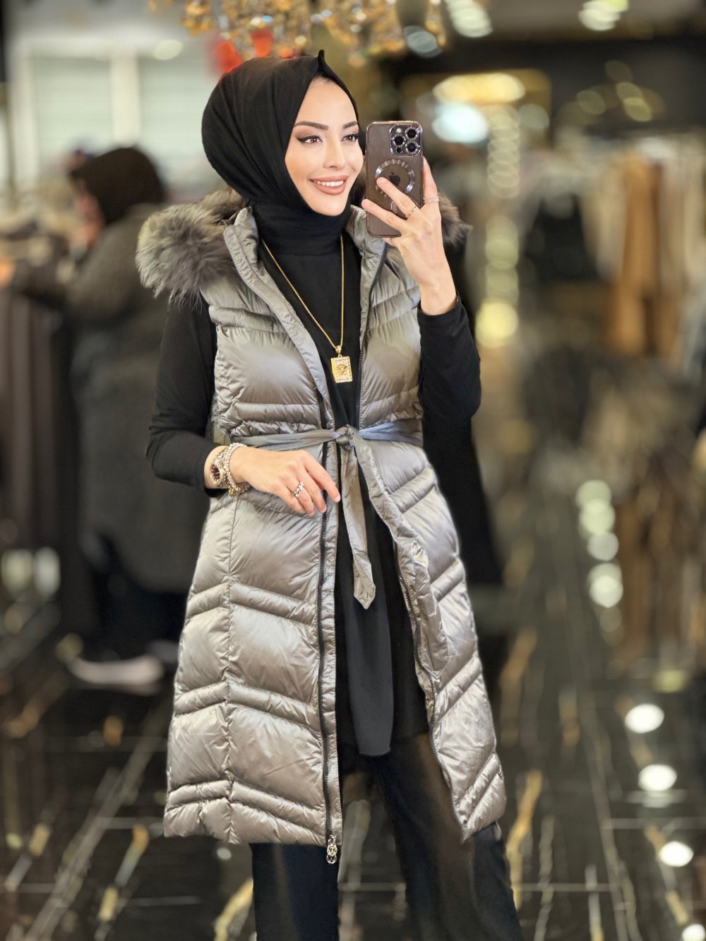 18273 Napoli Kapş.Kürklü Şişme Yelek Gri