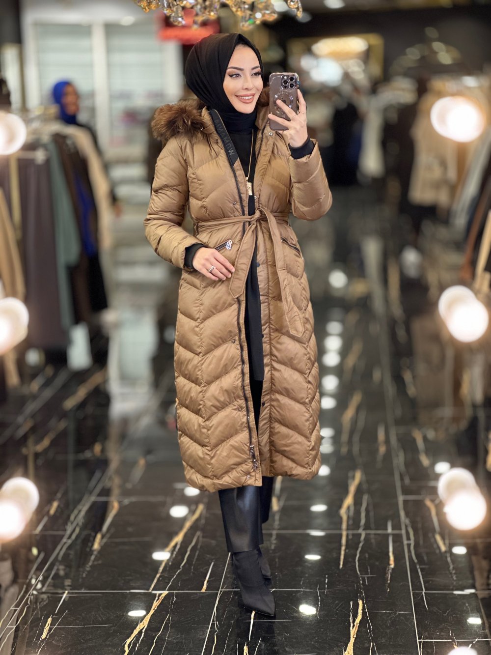 18692 X Jacket Şişme Kapş.Kürklü Kaban Karamel