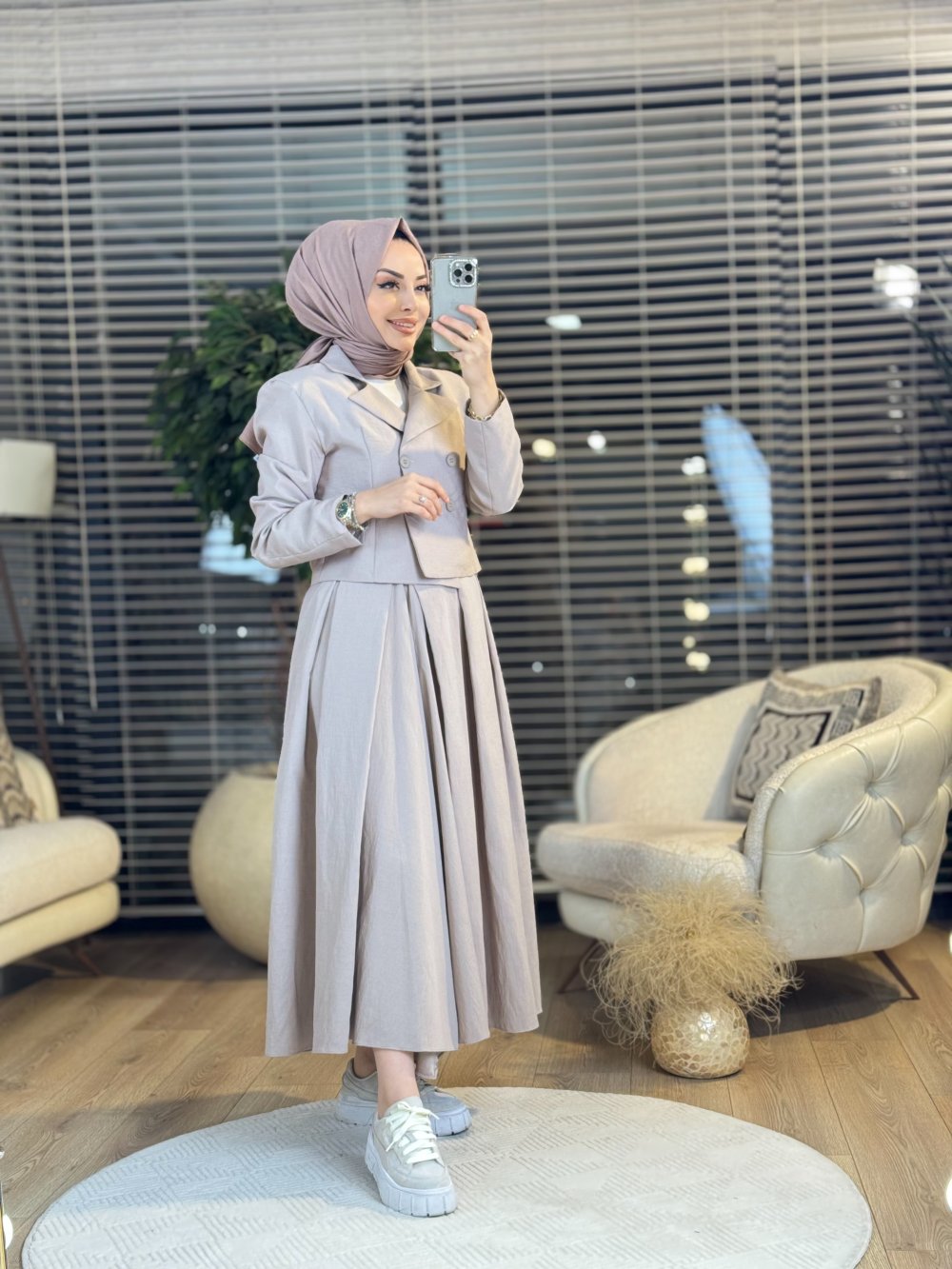 20635 Dört Düğmeli Ceket Etek Takım Bej