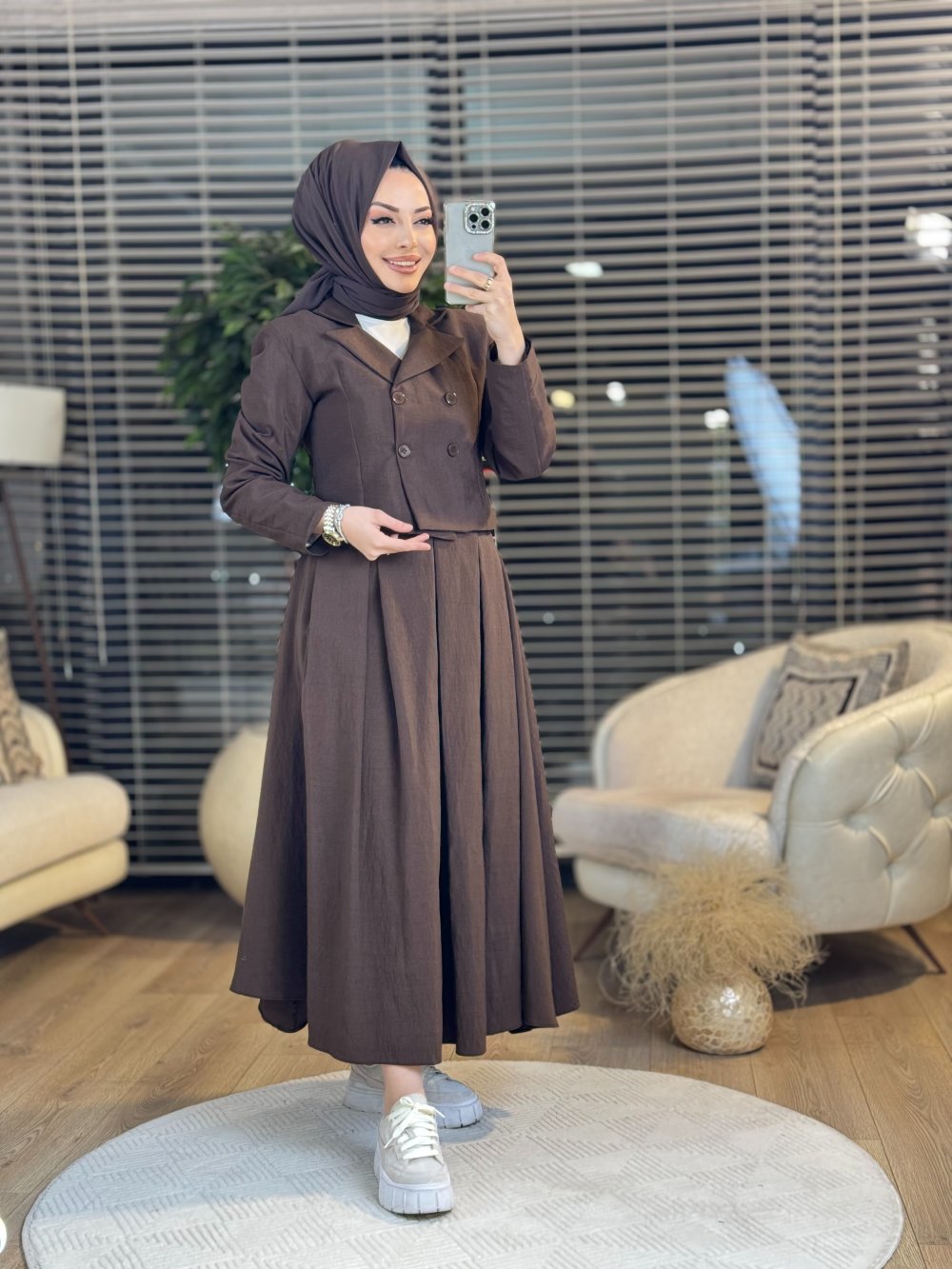 20635 Dört Düğmeli Ceket Etek Takım Kahve