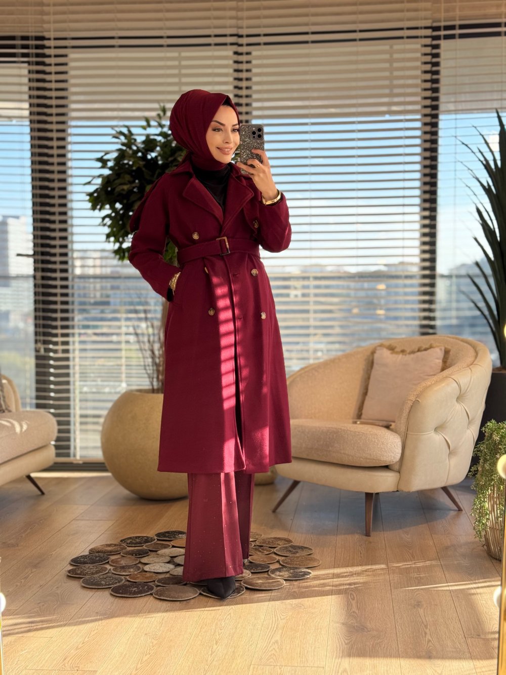 2186 Kaşe Altı Düğme Apoletli Kaban Bordo