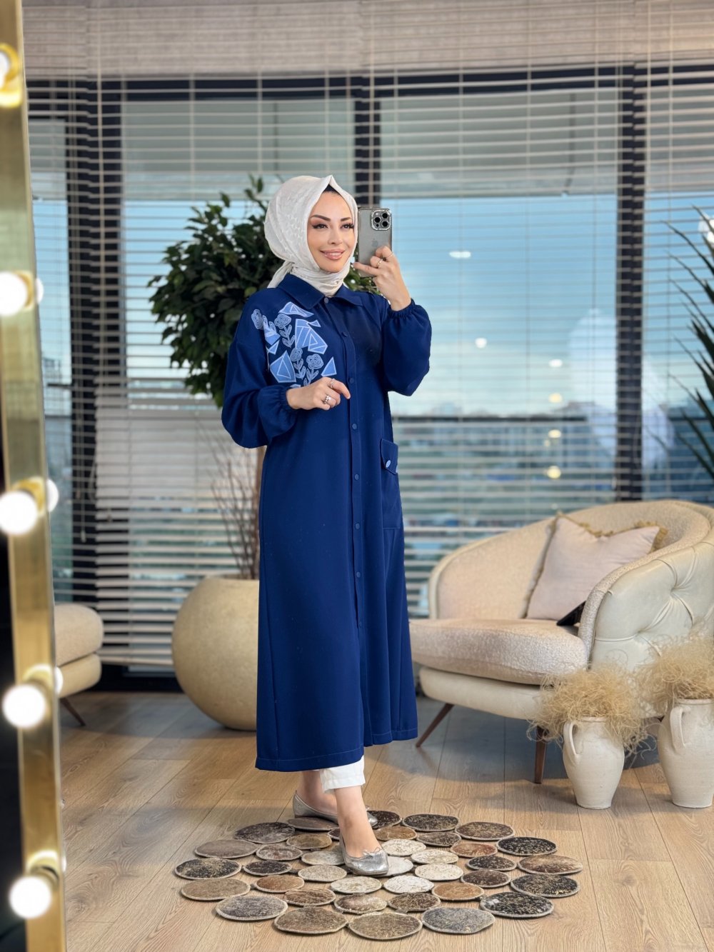 2216 Sol Göğsü Geometrik Desenli Kap Lacivert