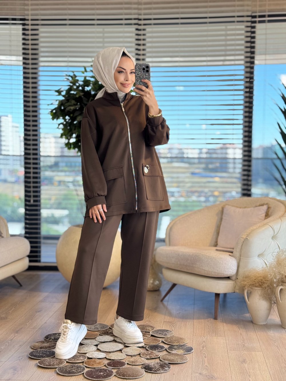 22571 Önden Cepli Fermuarlı Takım Kahve