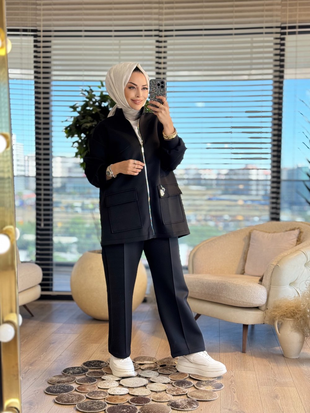 22571 Önden Cepli Fermuarlı Takım Siyah