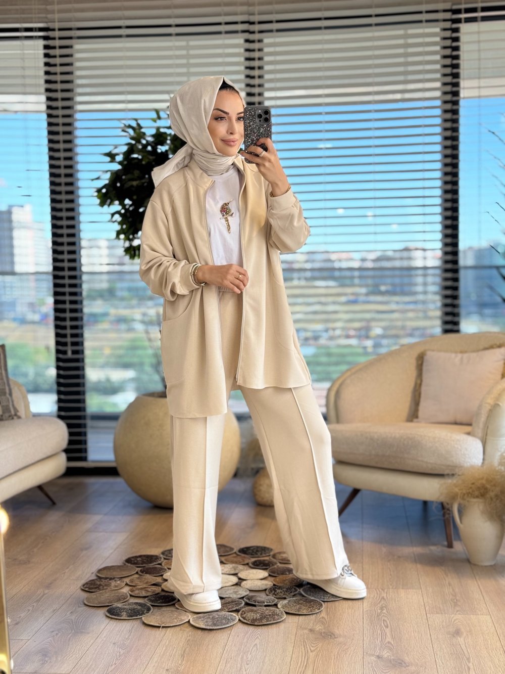 22741 Osyho Cep Dikiş Detaylı Fermuarlı Takım Bej