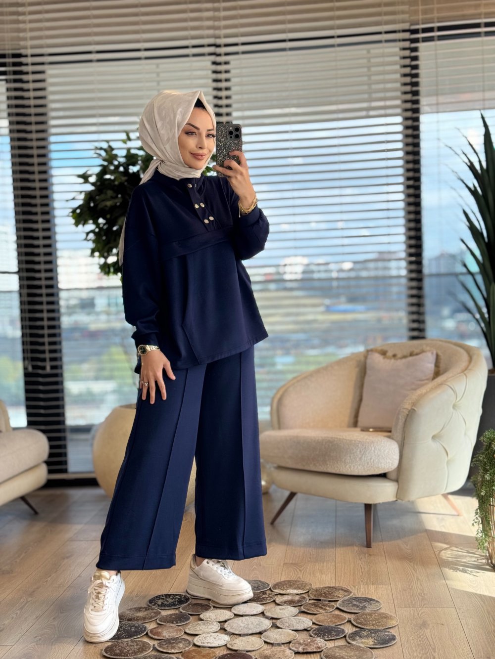 22753 Patı İki Sıra Çıtçıtlı Takım Lacivert