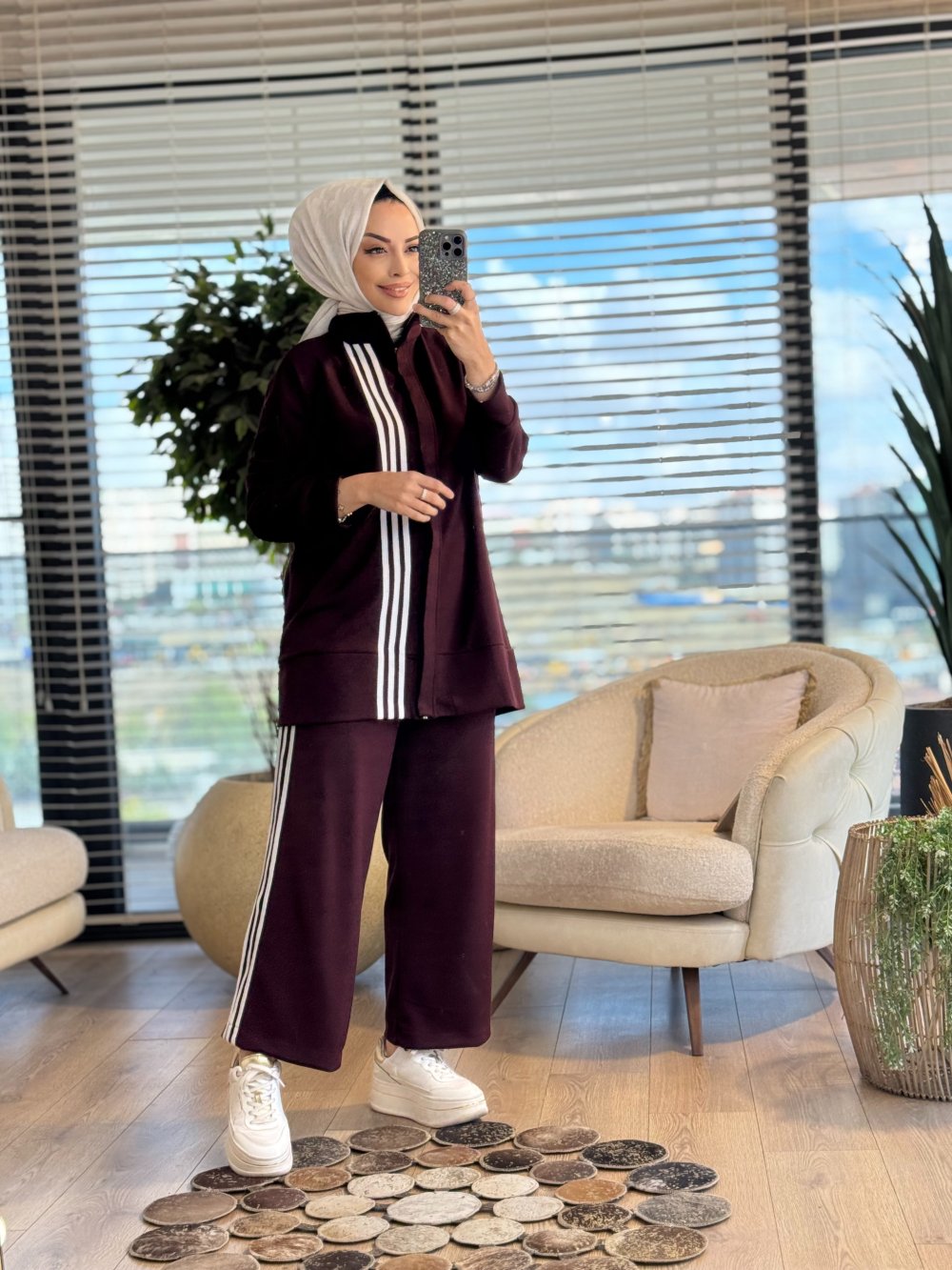 22754 Ön Ve Pantolon Yanı Çizgili Takım Bordo