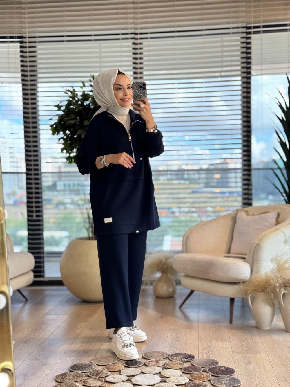 22775 Ön Parça Detaylı Ferm.Kapşonlu Takım Lacivert