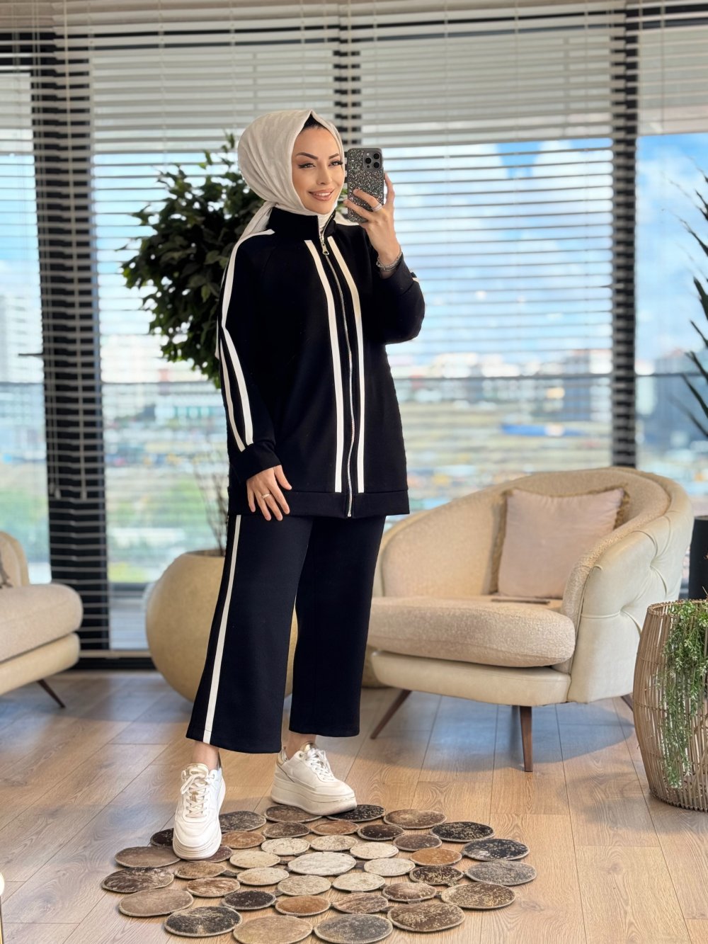 22787 Ön Kol Ve Pantolon Yanı Şeritli Takım Siyah