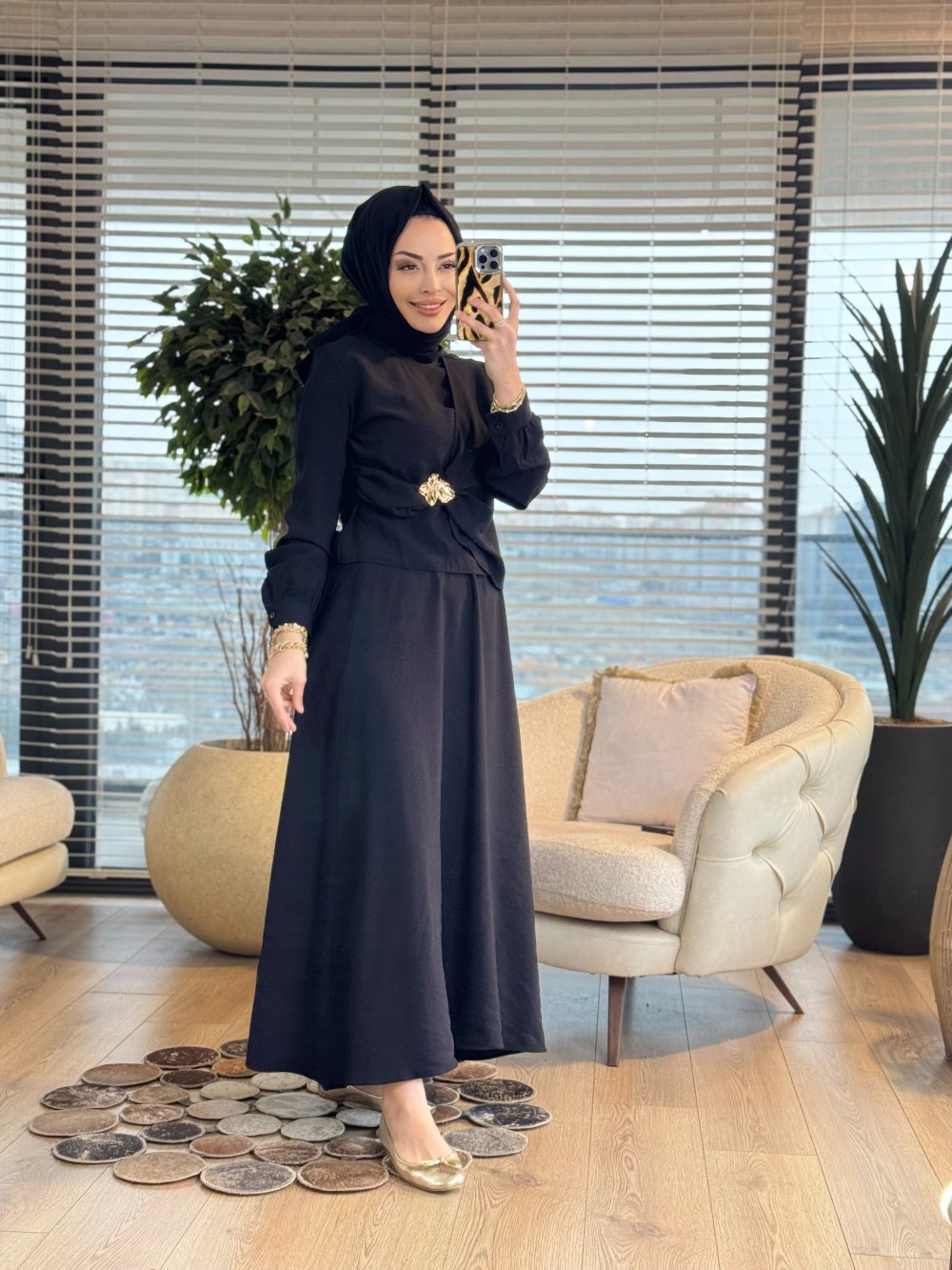 22823 Önü Parça Ve Broşlu Takım Siyah