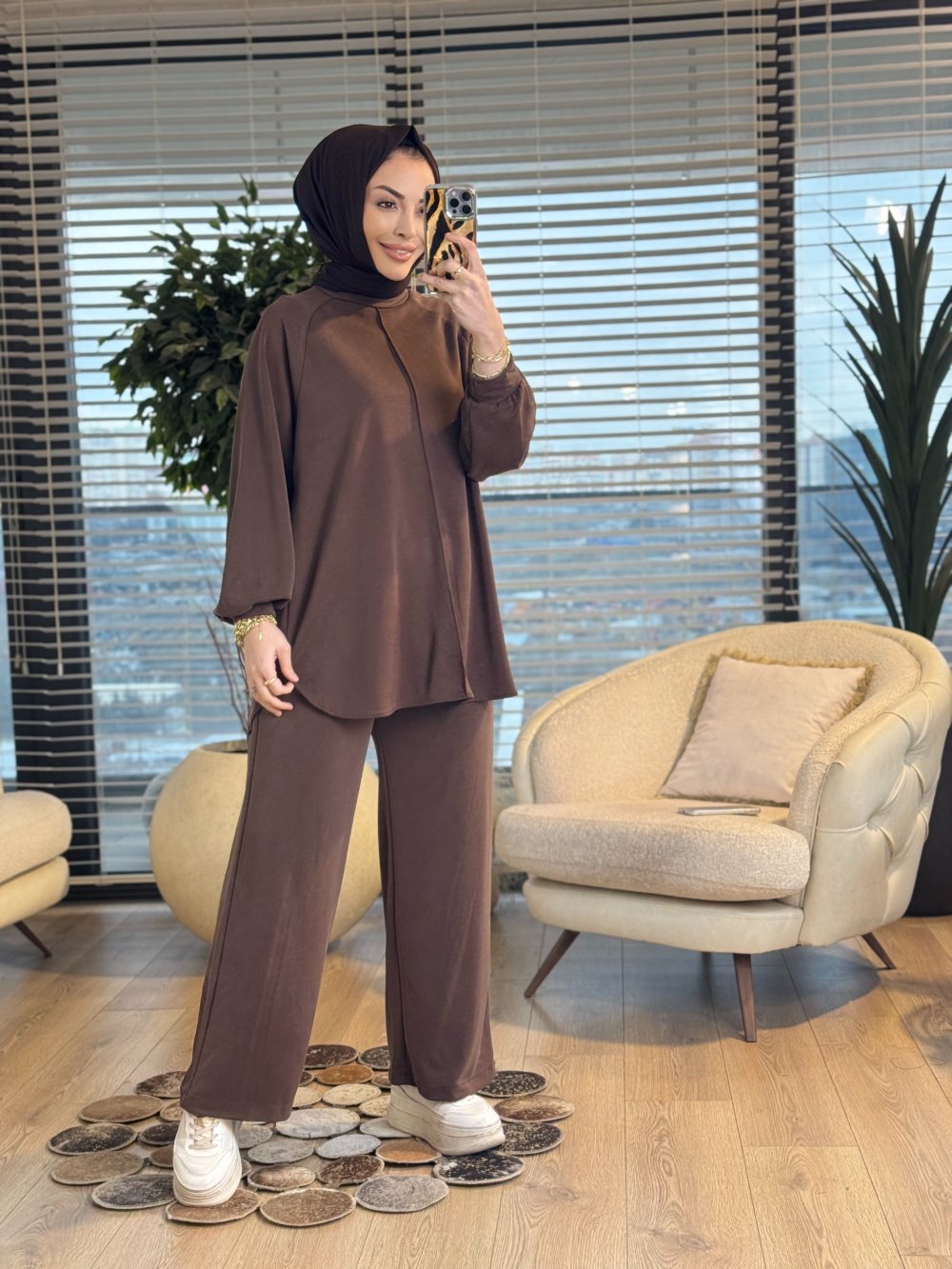 22831-5 Ön Boyuna Dikişli Takım Kahve