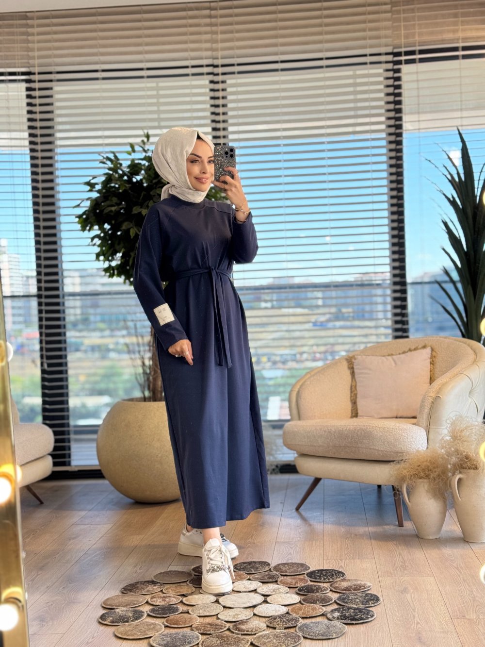 2400 Kolu Etiket Detaylı Elbise