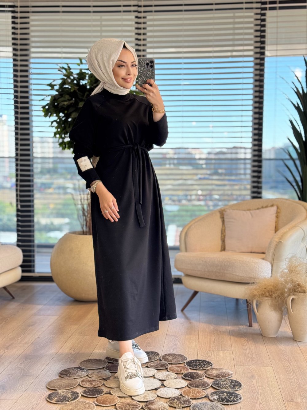 2400 Kolu Etiket Detaylı Elbise Siyah