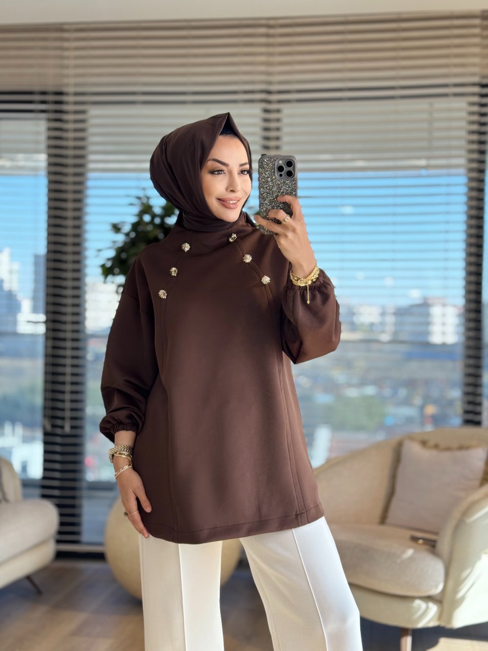 24134 Çiçek Tunik Kahve