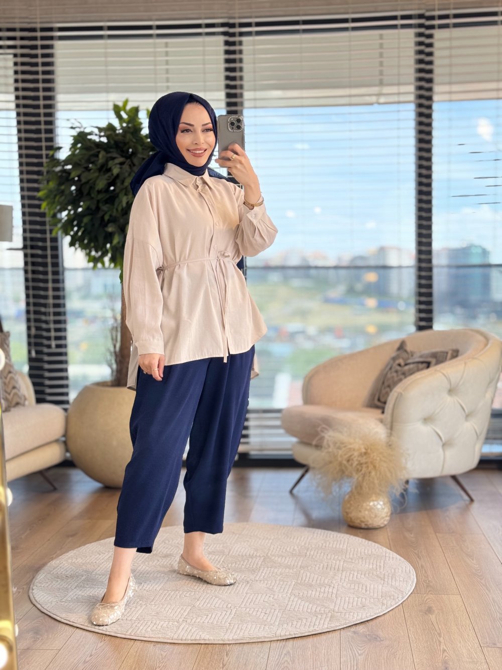 24300 Klasik Kuşaklı Gömlek Bej