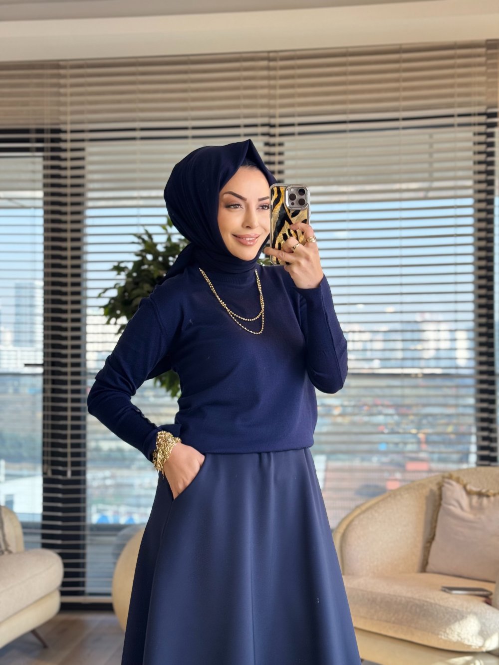 2455 Kolları Zımba Detaylı Triko Kazak Lacivert