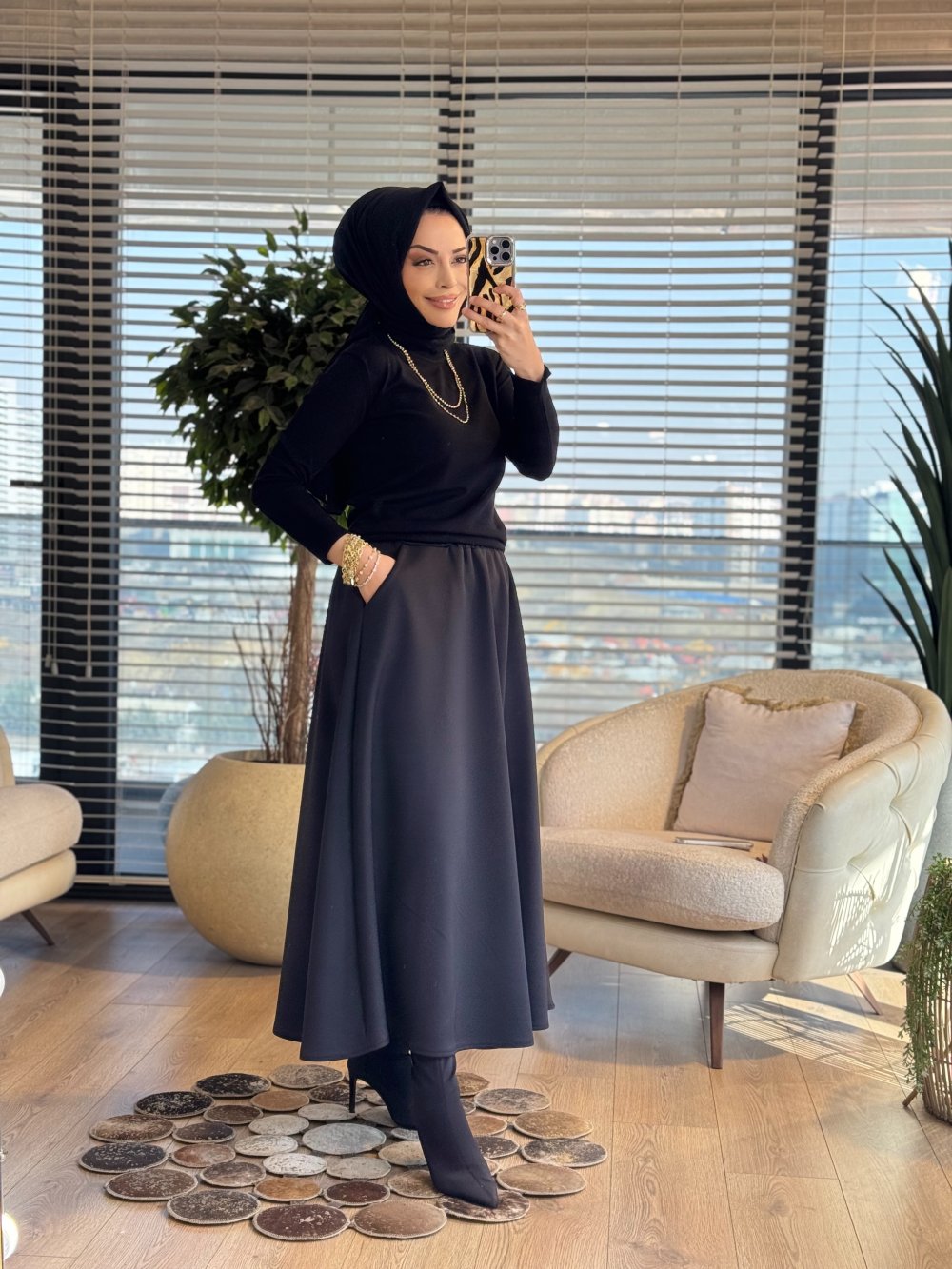 2455 Kolları Zımba Detaylı Triko Kazak Siyah