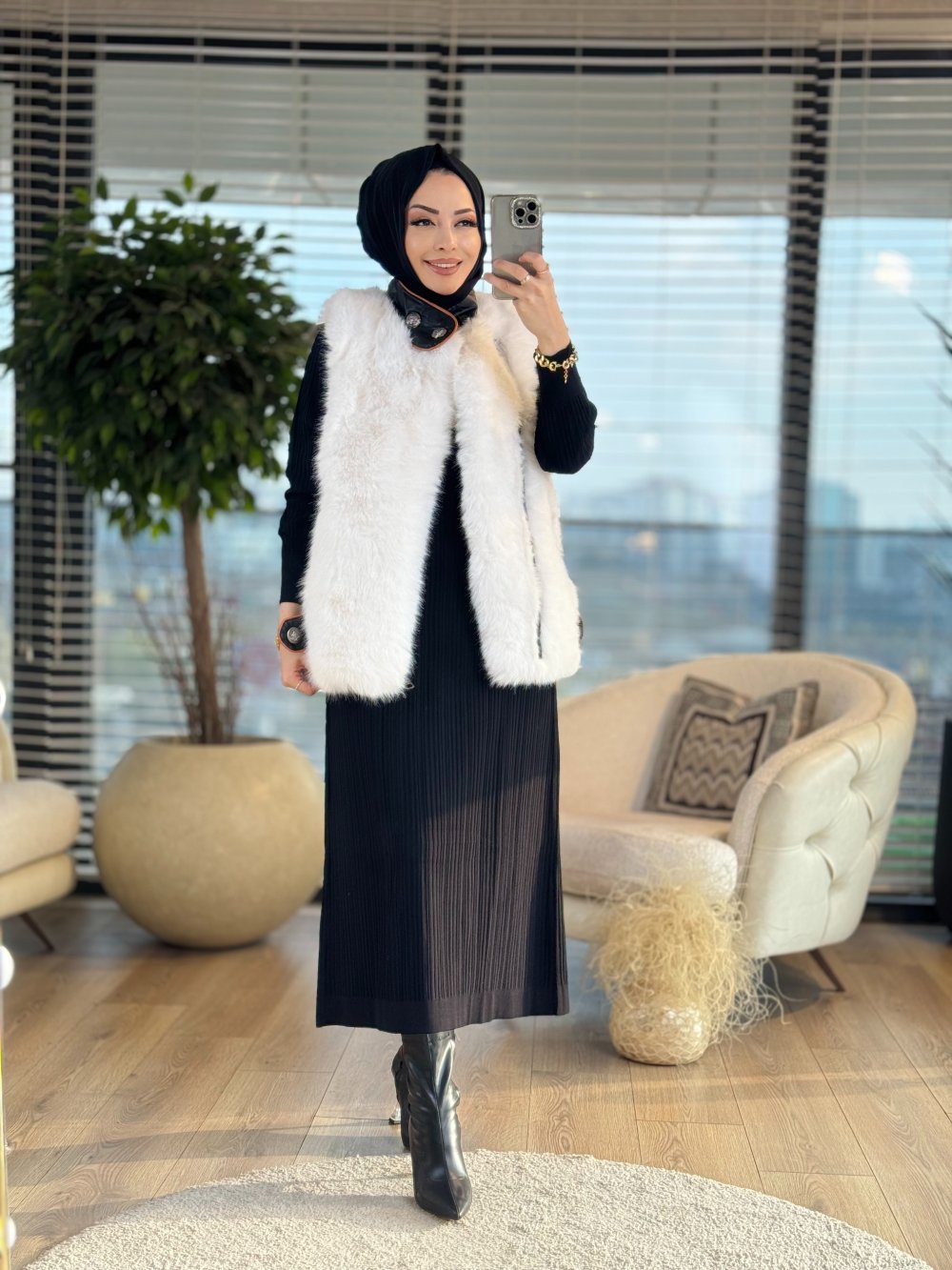 24W2058 Caren Peluş Yelek Siyah