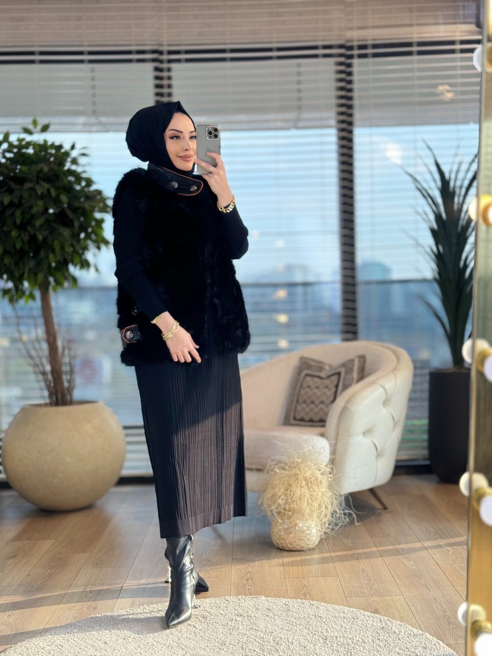 24W2058 Caren Peluş Yelek Siyah