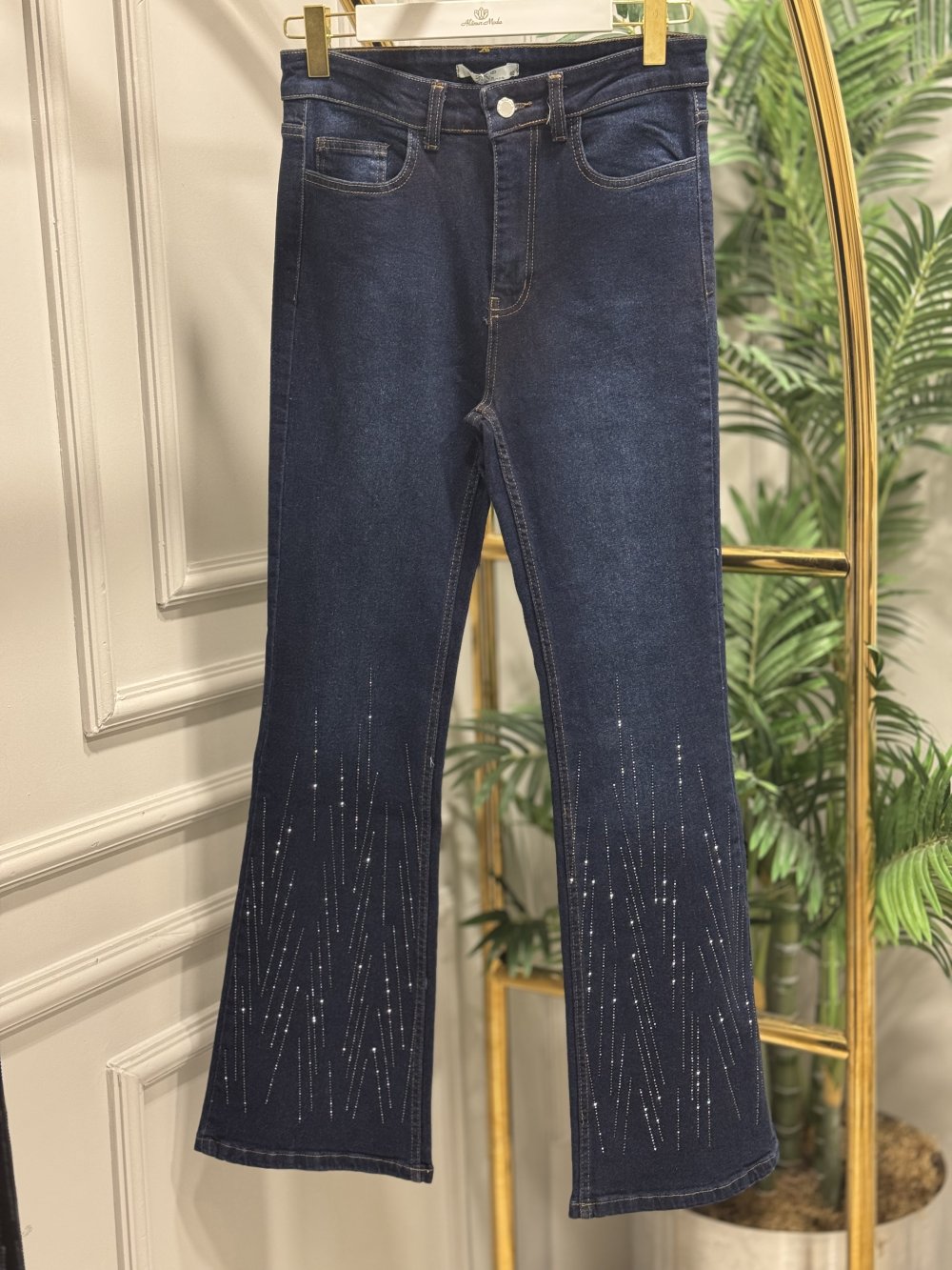 25077 Kot İspanyol Paça Taşlı Pantolon Lacivert