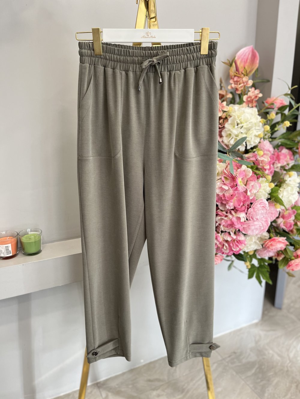 25080 Paçası Çıtçıt Manşetli Pantolon Haki