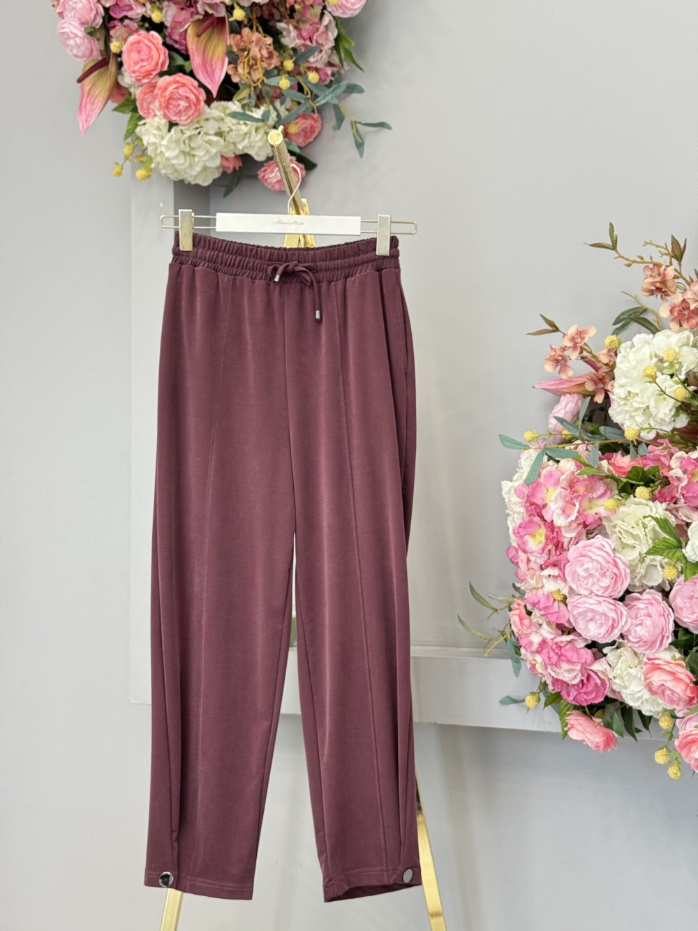 25097 Paçası Çıtçıtlı Pantolon Bordo