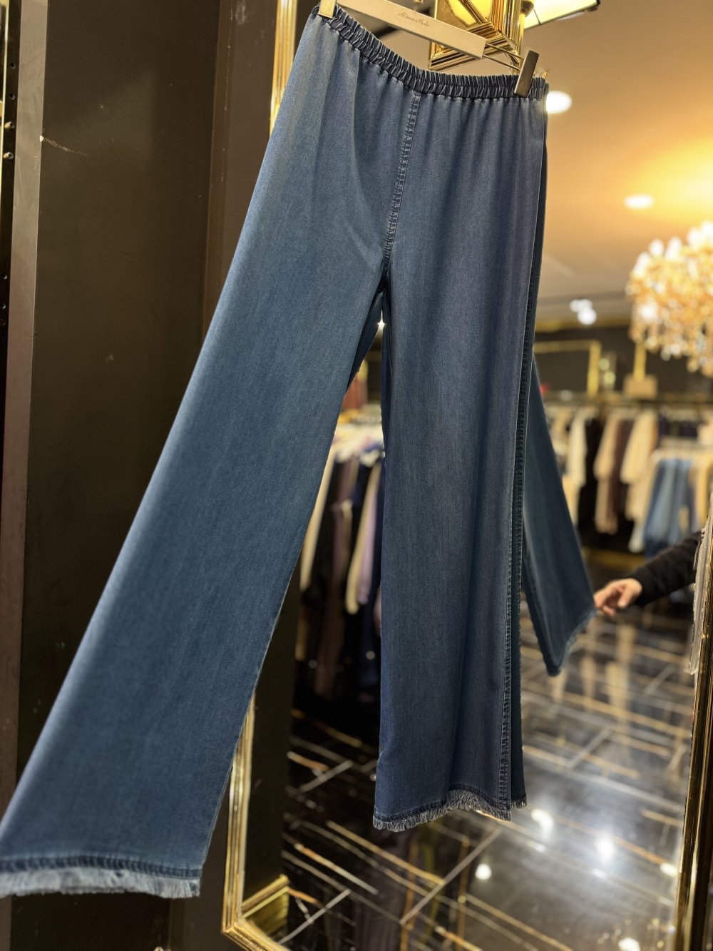 2511 Tencel Paçası Saçaklı Pantolon Mavi