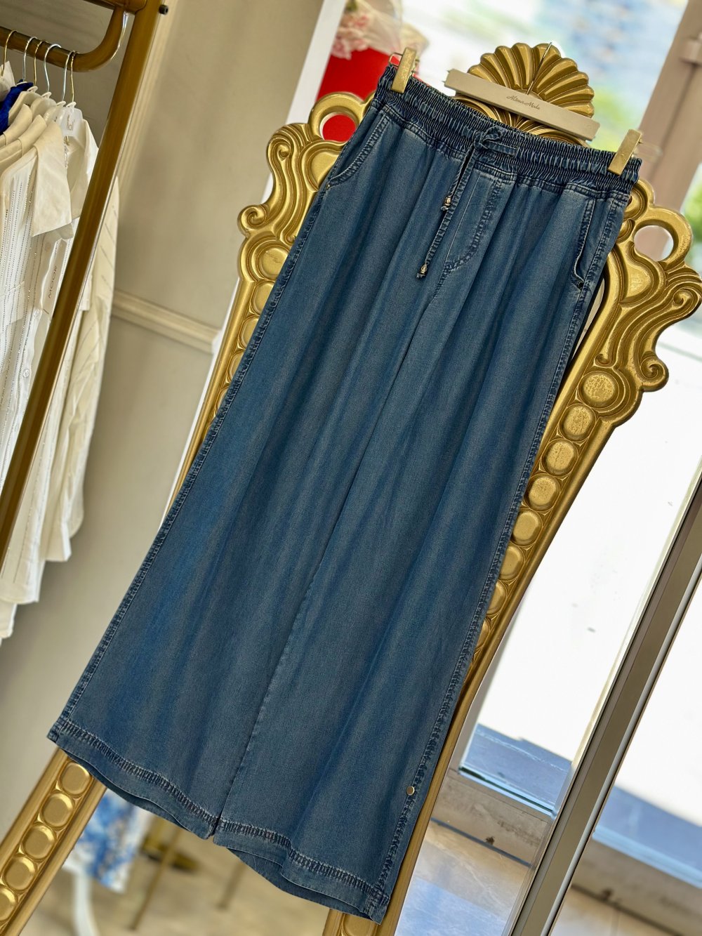 2517 Beli Lastikli Tencel Pantolon Koyu Mavi