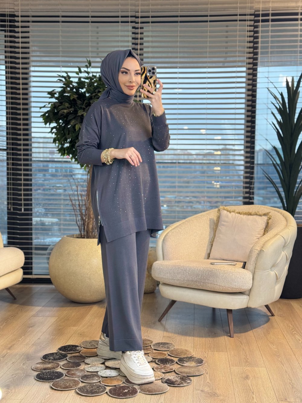 25193 Ön Taş Baskı Yandan Fermuarlı Takım Antrasit