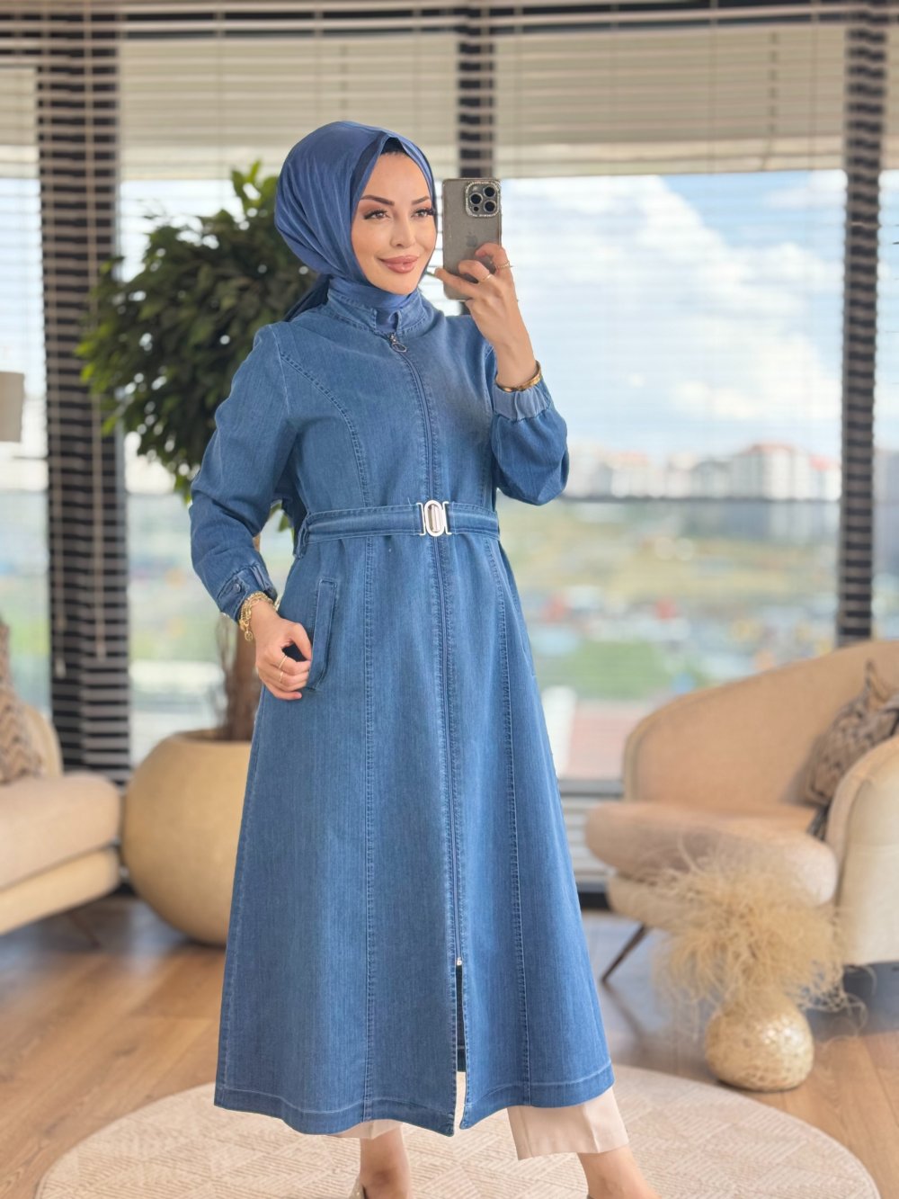 2536 Hakim Yaka Fermuarlı Kot Kap Mavi